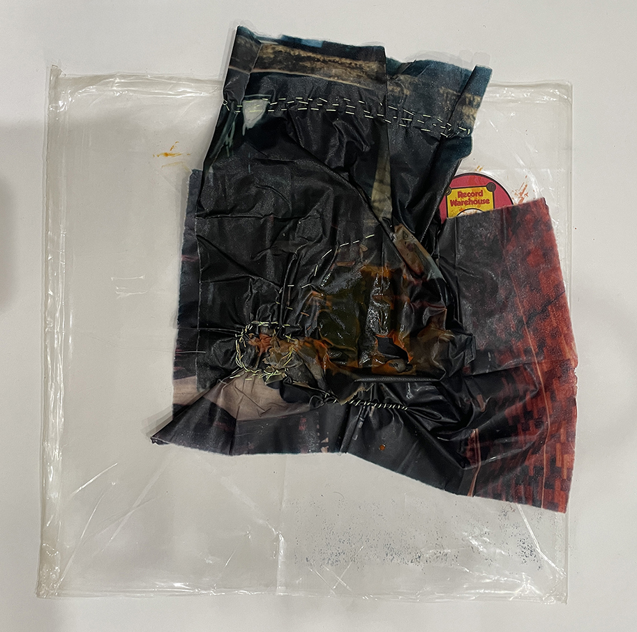 2024 ⋮ nylon, heatpress, photographs, found objects