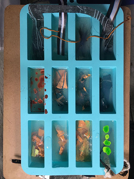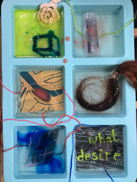 2023 ⋮ clothing, hair, ephemera, bioplastic, resin, block print, bamboo
